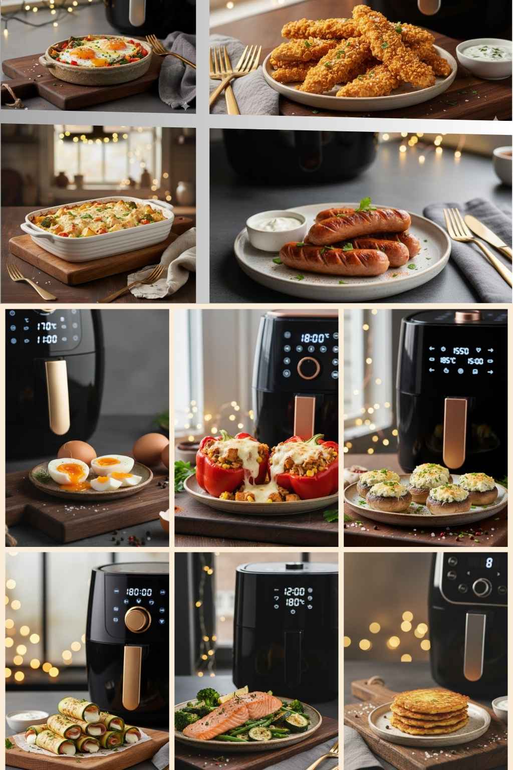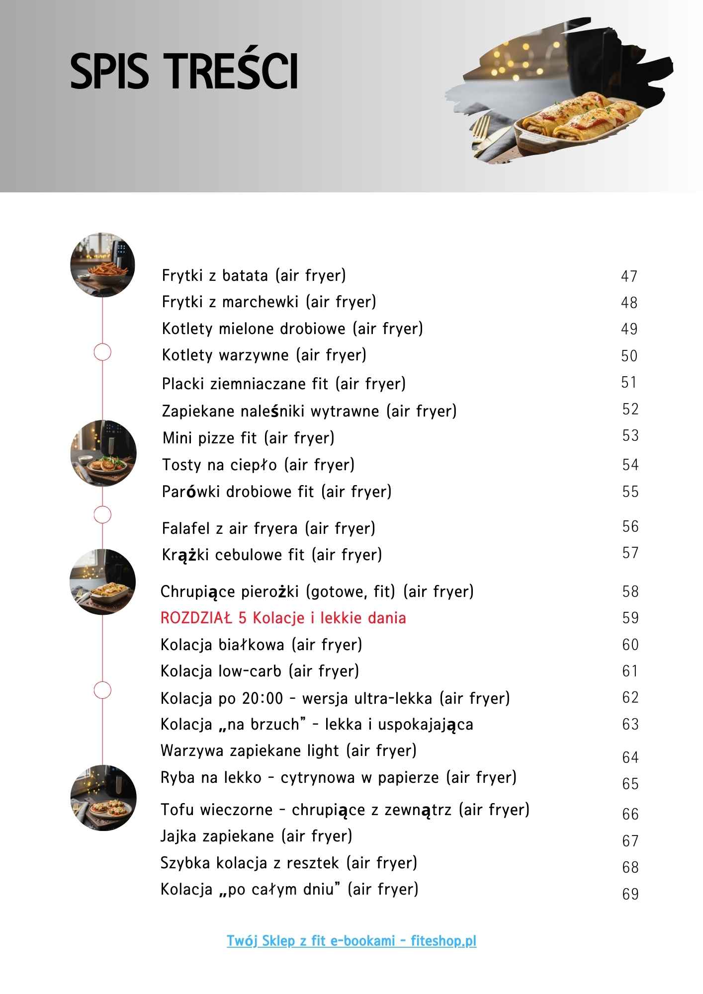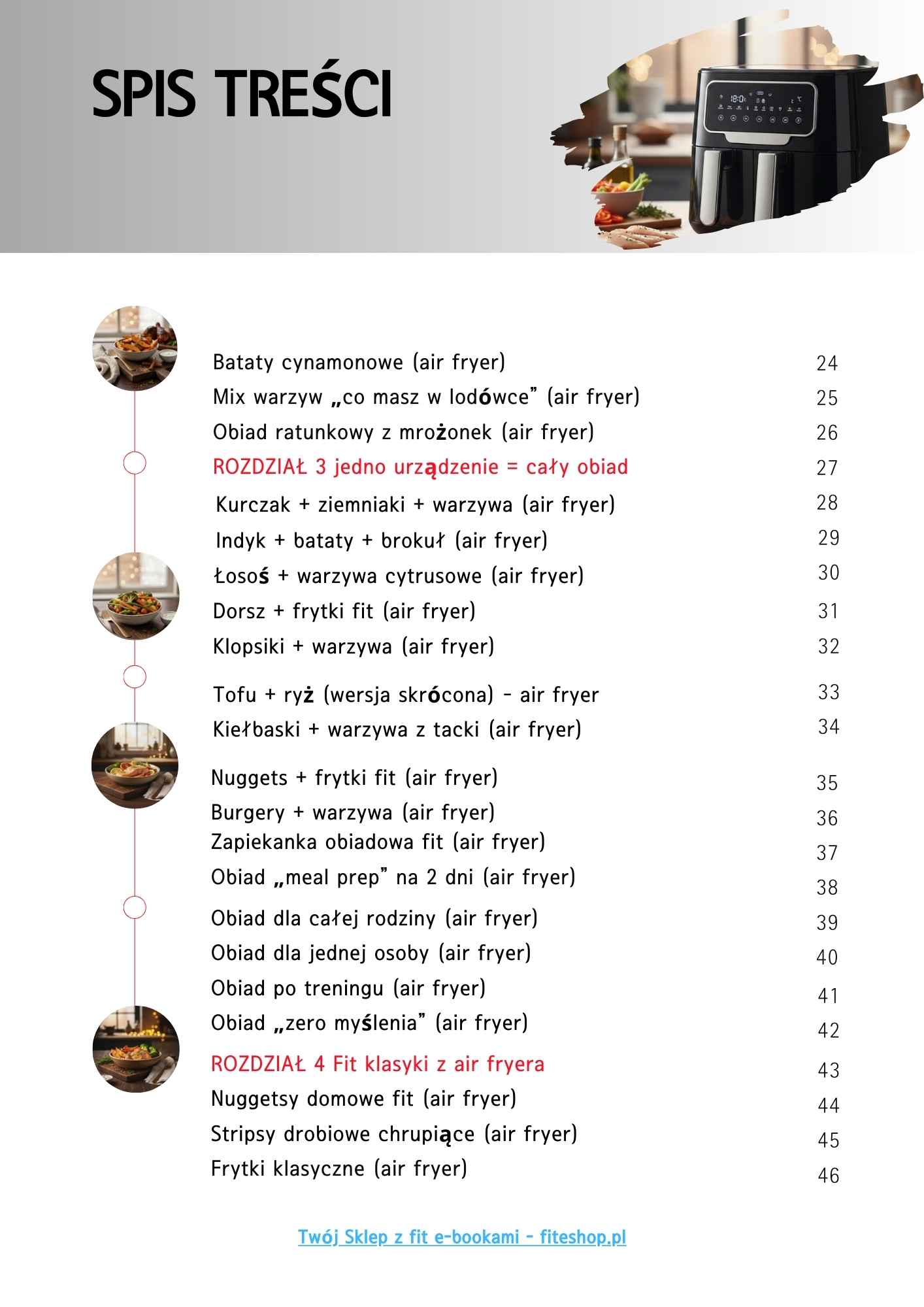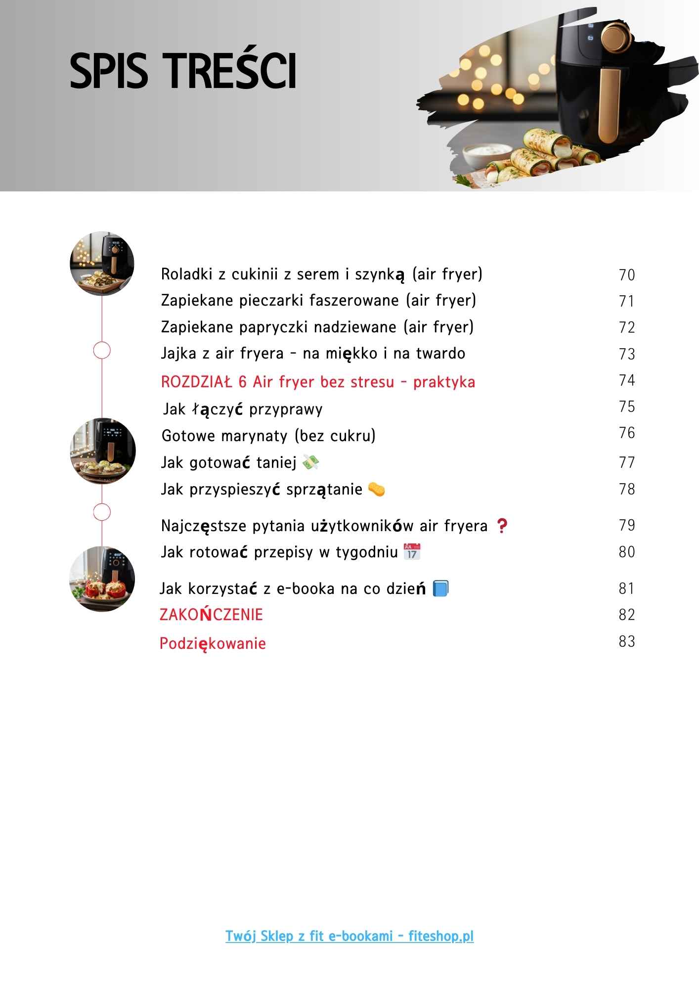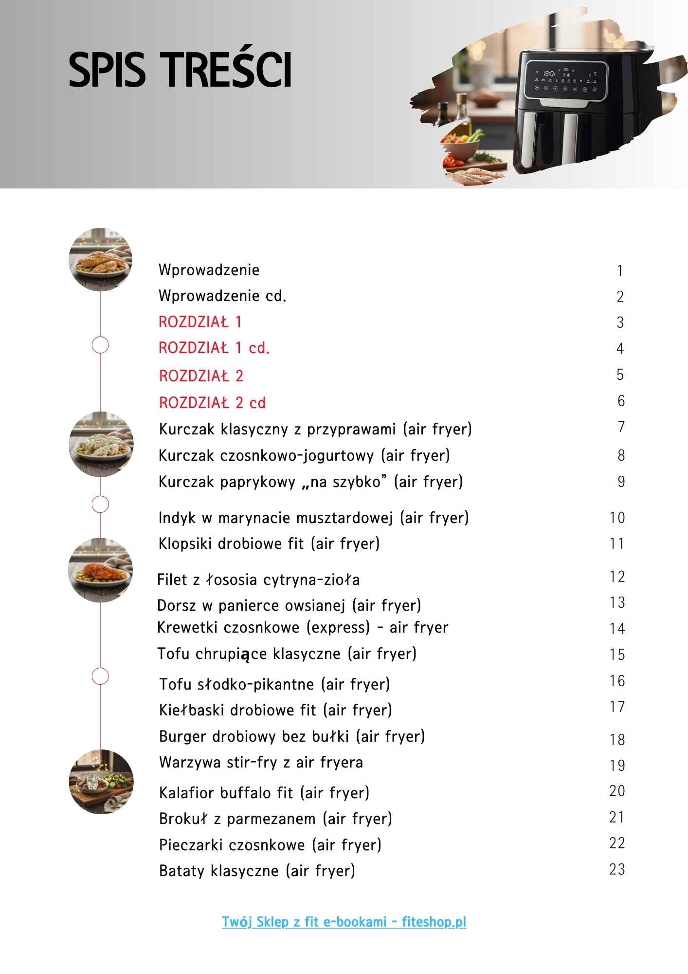 📘 Ponad 60 sprawdzonych przepisów do air fryera, podzielonych na logiczne rozdziały: