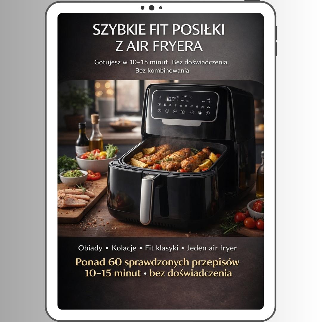 „Szybkie Fit Posiłki z Air Fryera” to e-book dla ludzi, którzy chcą jeść normalnie, zdrowiej i szybciej — bez stania w kuchni, bez zgadywania i bez kombinowania.